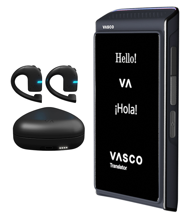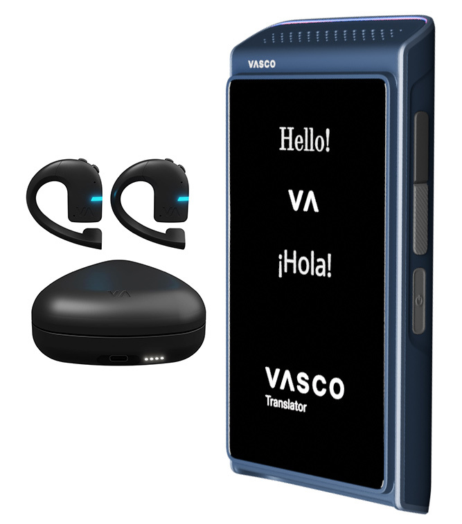 - De Vasco E1 draadloze oordopjes vertalen gesprekken in real-time, zodat u naadloos kunt communiceren in meerdere talen. Deze comfortabele oordopjes verbinden met een smartphone-app, of kunnen gebruikt worden met de Vasco Q1, waarbij geen smartphone nodig is.